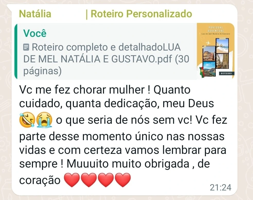 Você receberá um arquivo detalhado e com ele, irá entender como tomo as decisões mais estratégicas nos meus roteiros, só que dessa vez, será para A SUA VIAGEM!