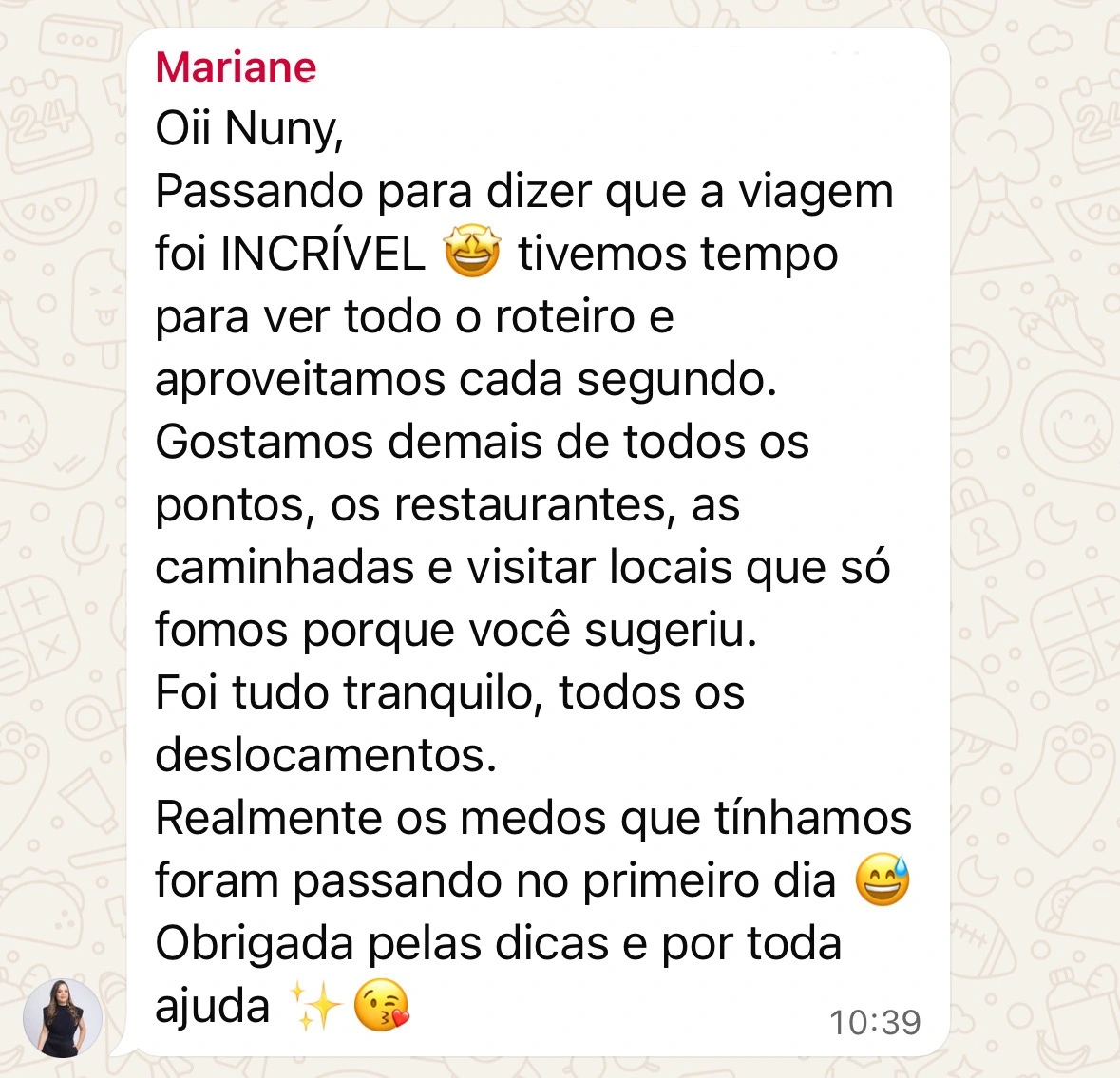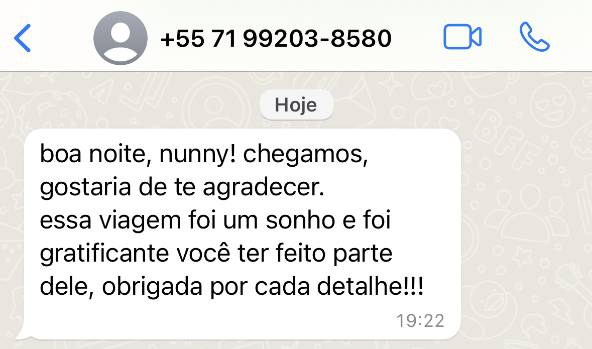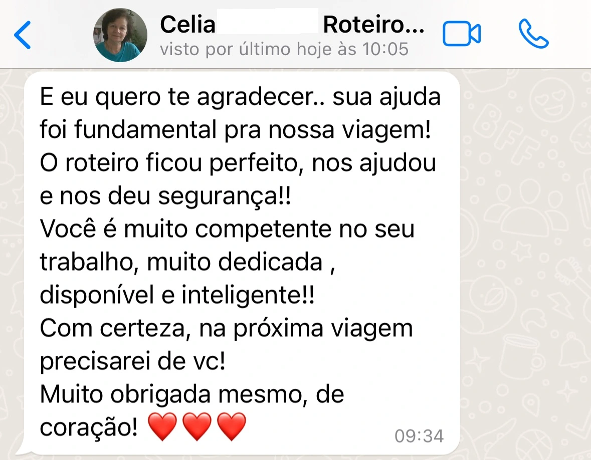 Após o recebimento do seu Raio-X com toda sua análise detalhada, você terá acesso ao meu Whatsapp para poder sanar qualquer dúvida que possa ter ficado e assim, poder viajar com total segurança.