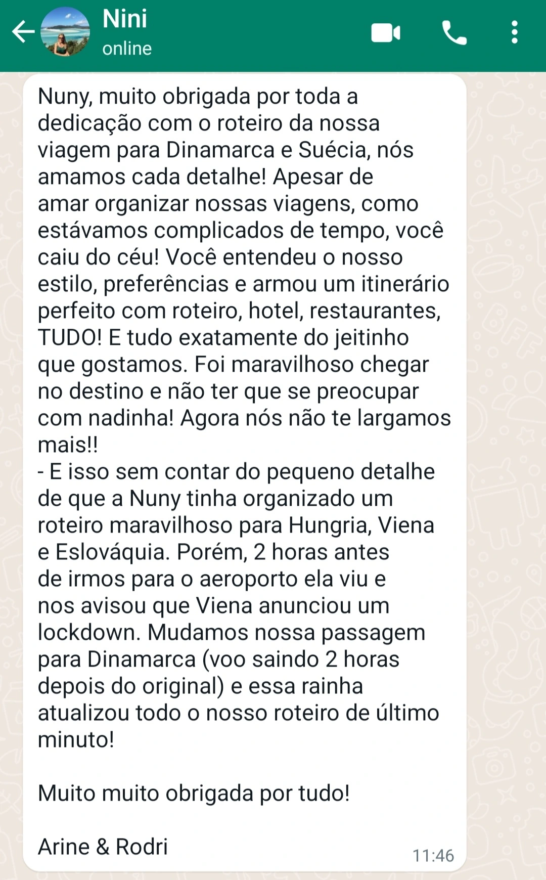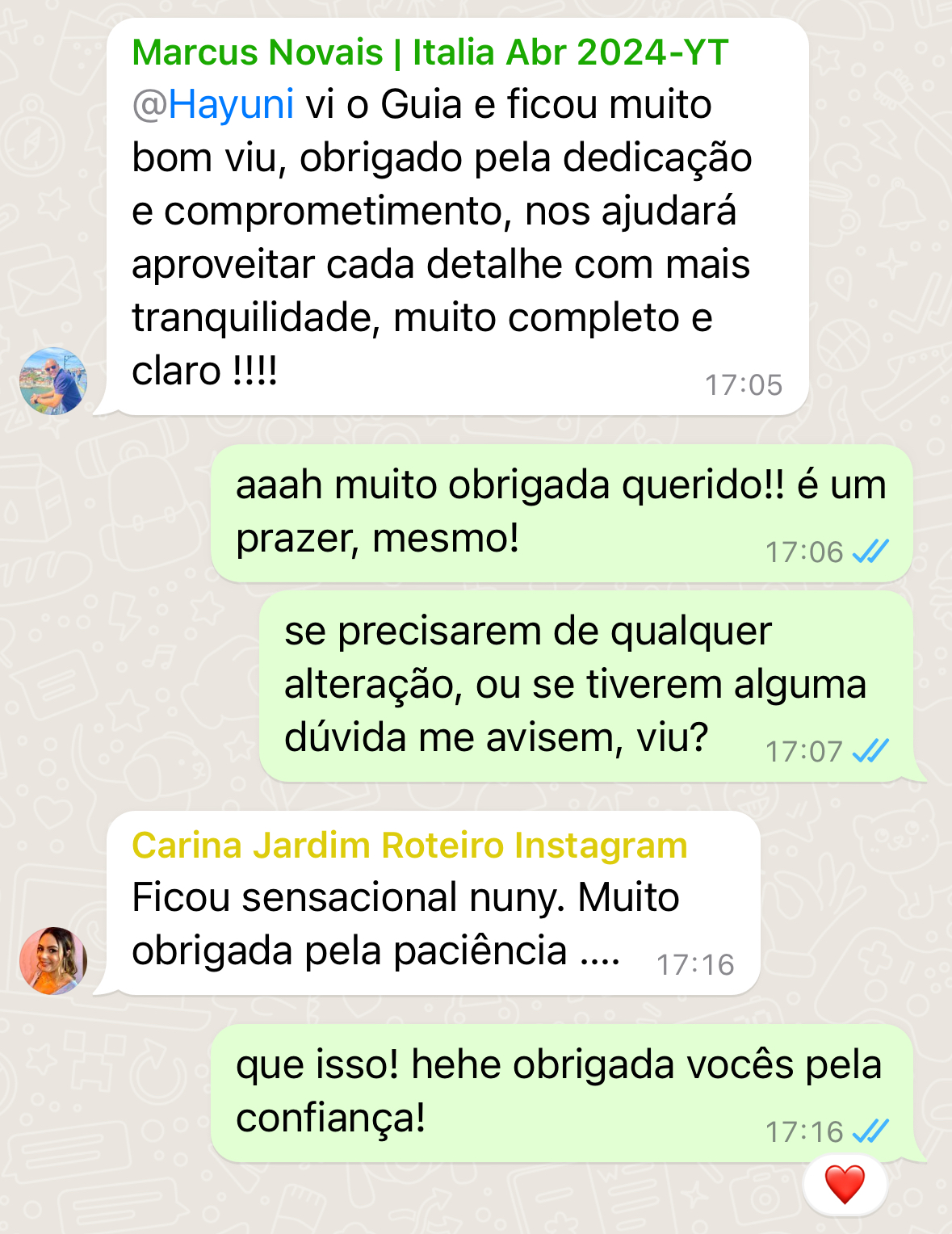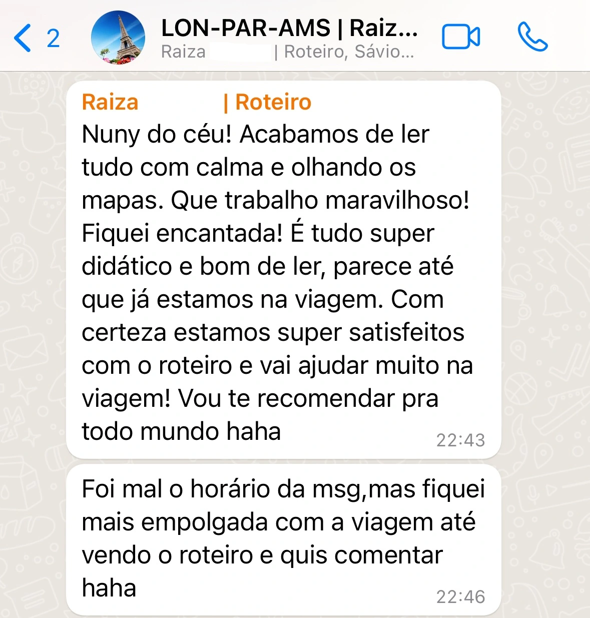 Após o recebimento do seu Raio-X com toda sua análise detalhada, você terá acesso ao meu Whatsapp para poder sanar qualquer dúvida que possa ter ficado e assim, poder viajar com total segurança.